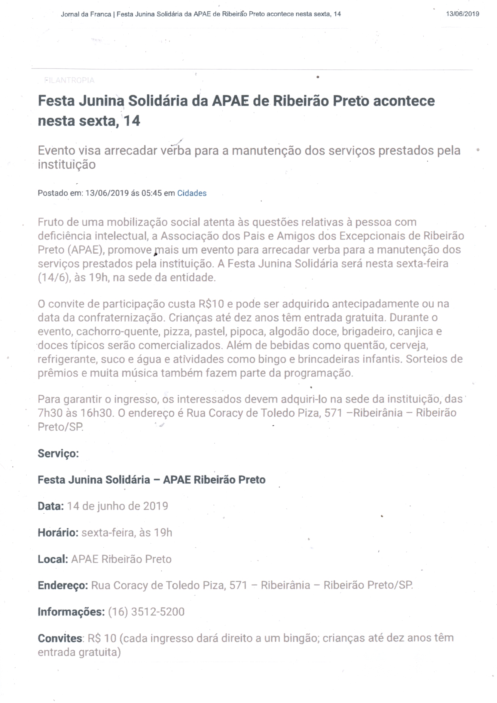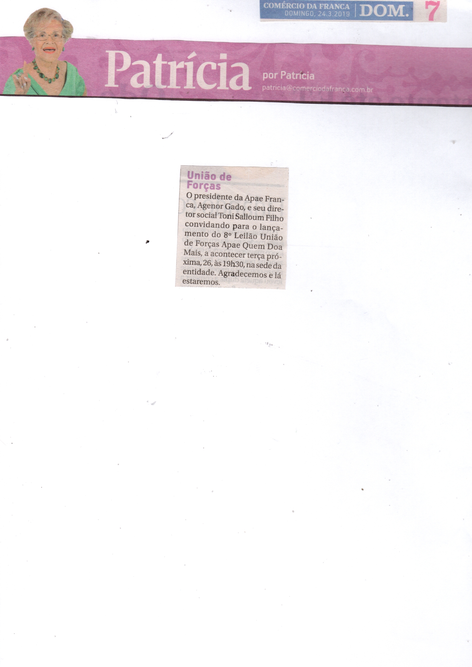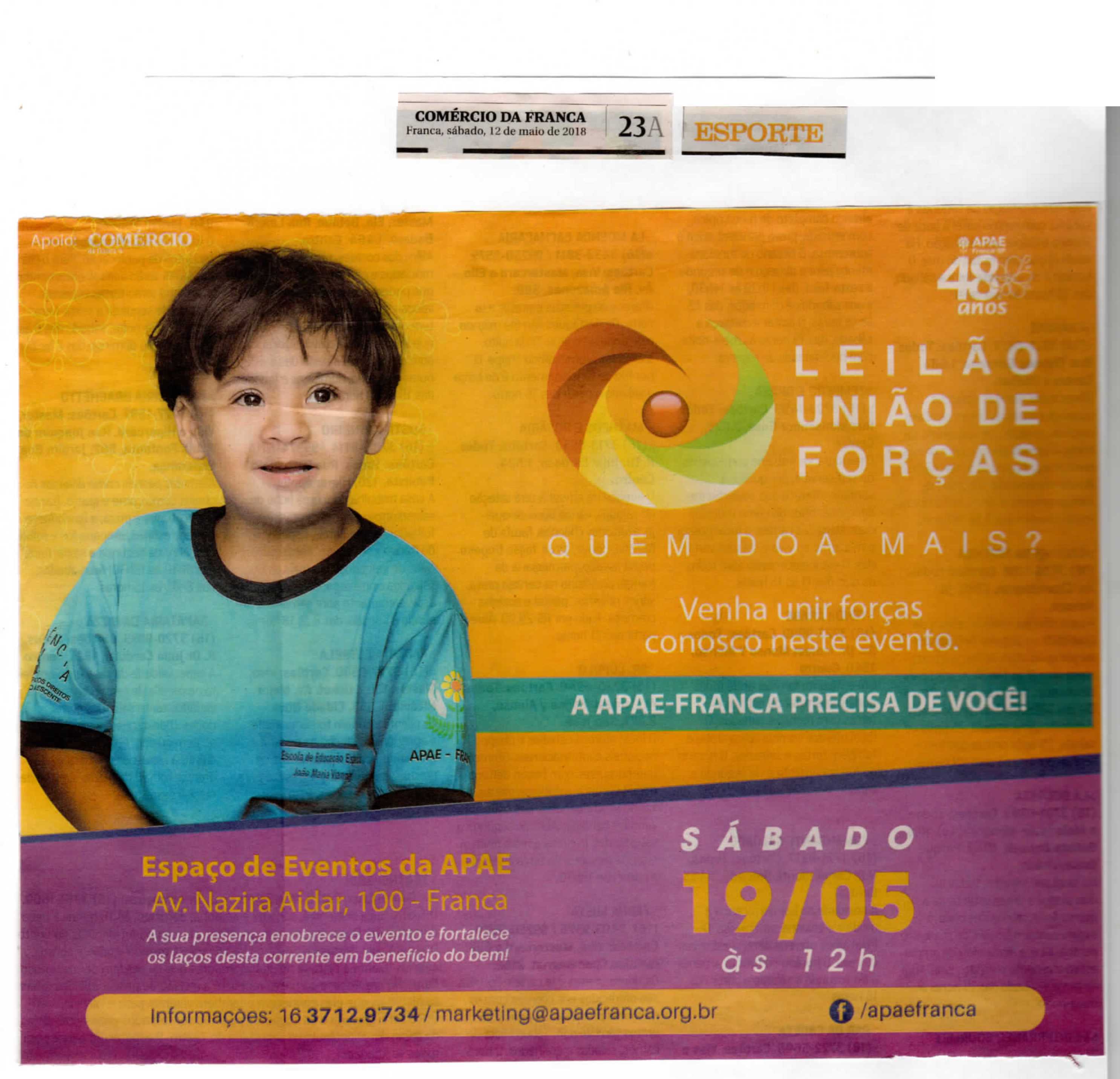 08/06/16 - DIÁRIO DA FRANCA - Apae lança campanha para 21º Leilão União de Forças - 0806-d...