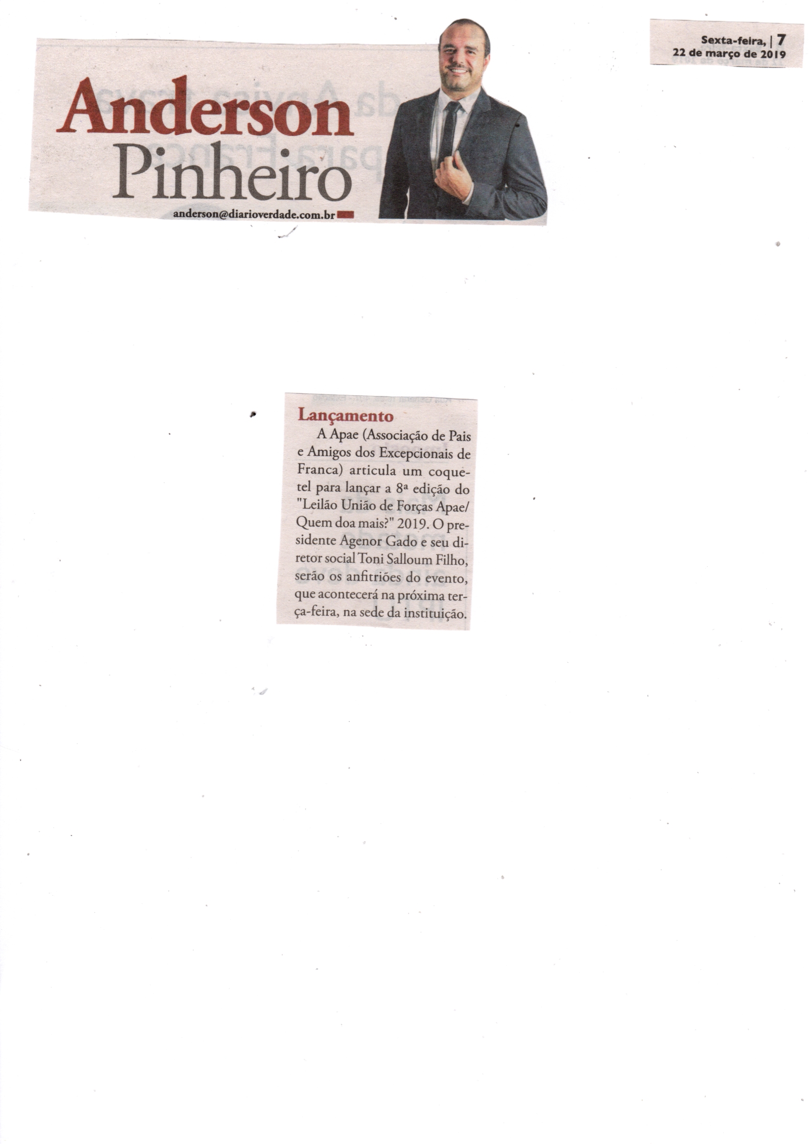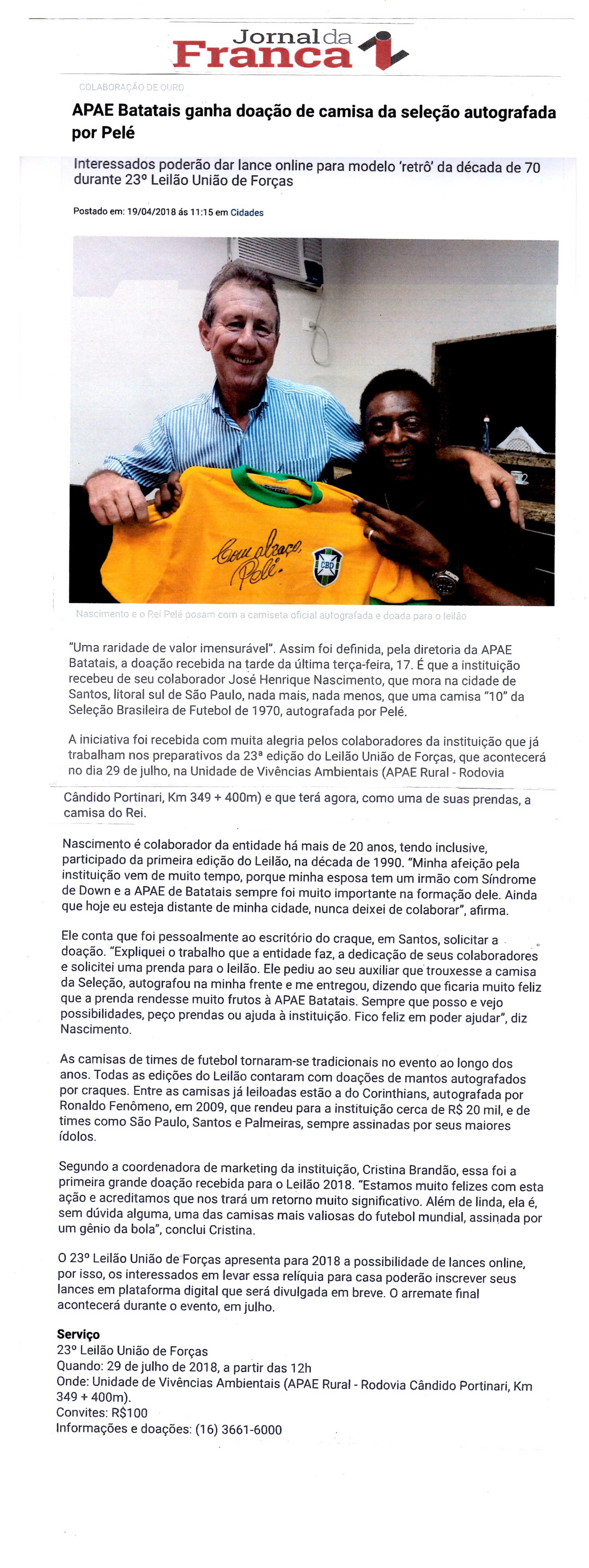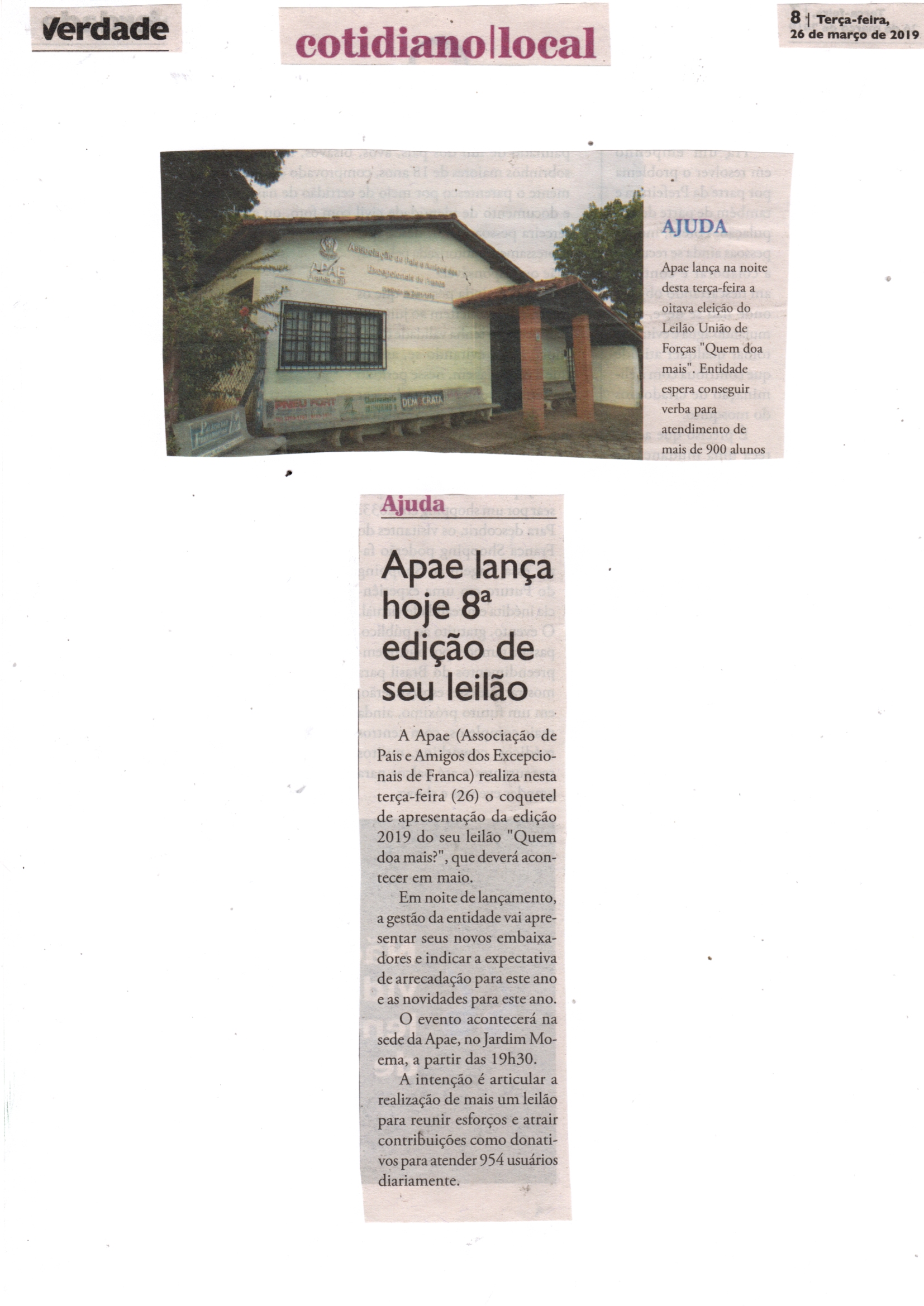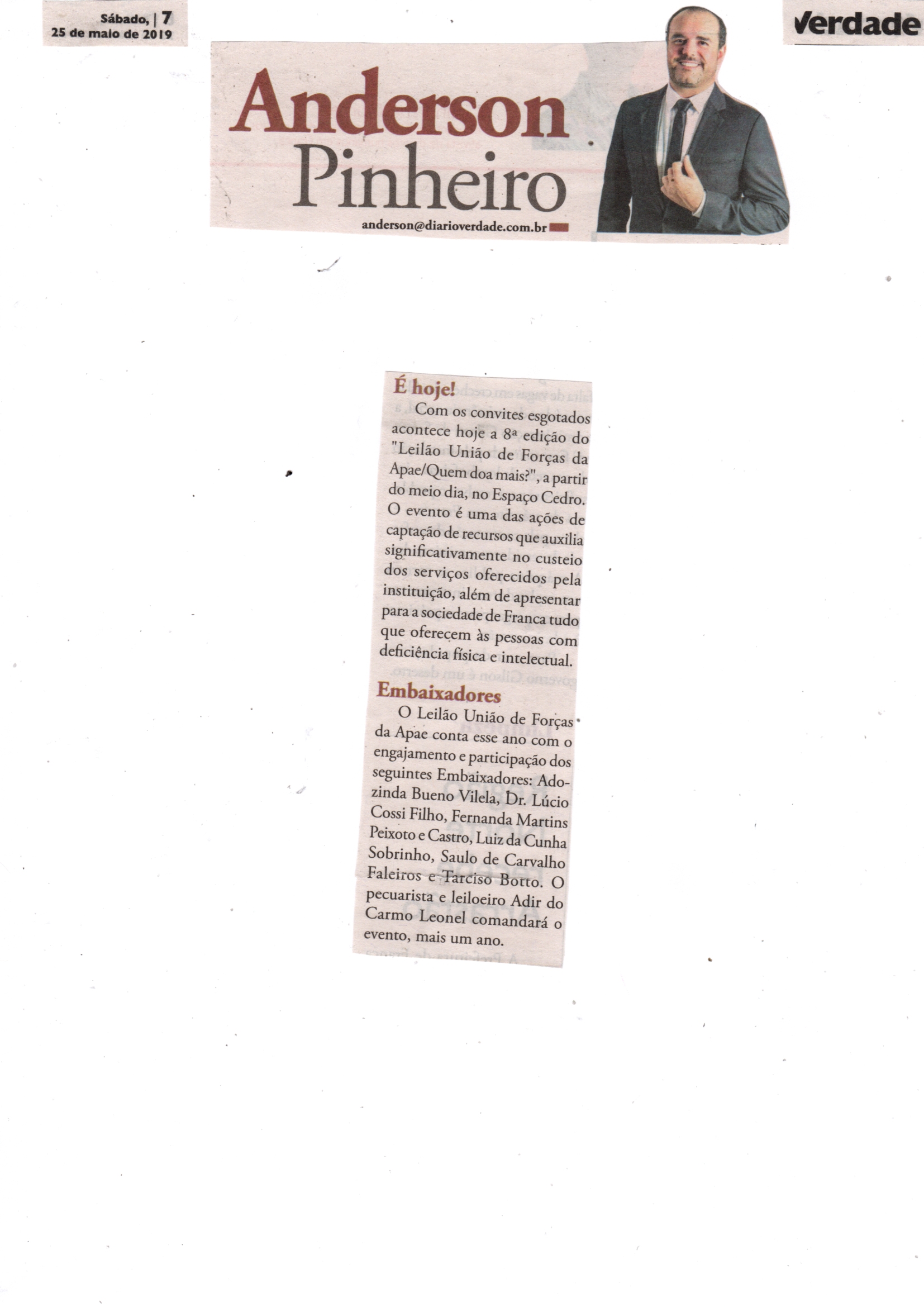 08/06/16 - DIÁRIO DA FRANCA - Apae lança campanha para 21º Leilão União de Forças - 0806-d...