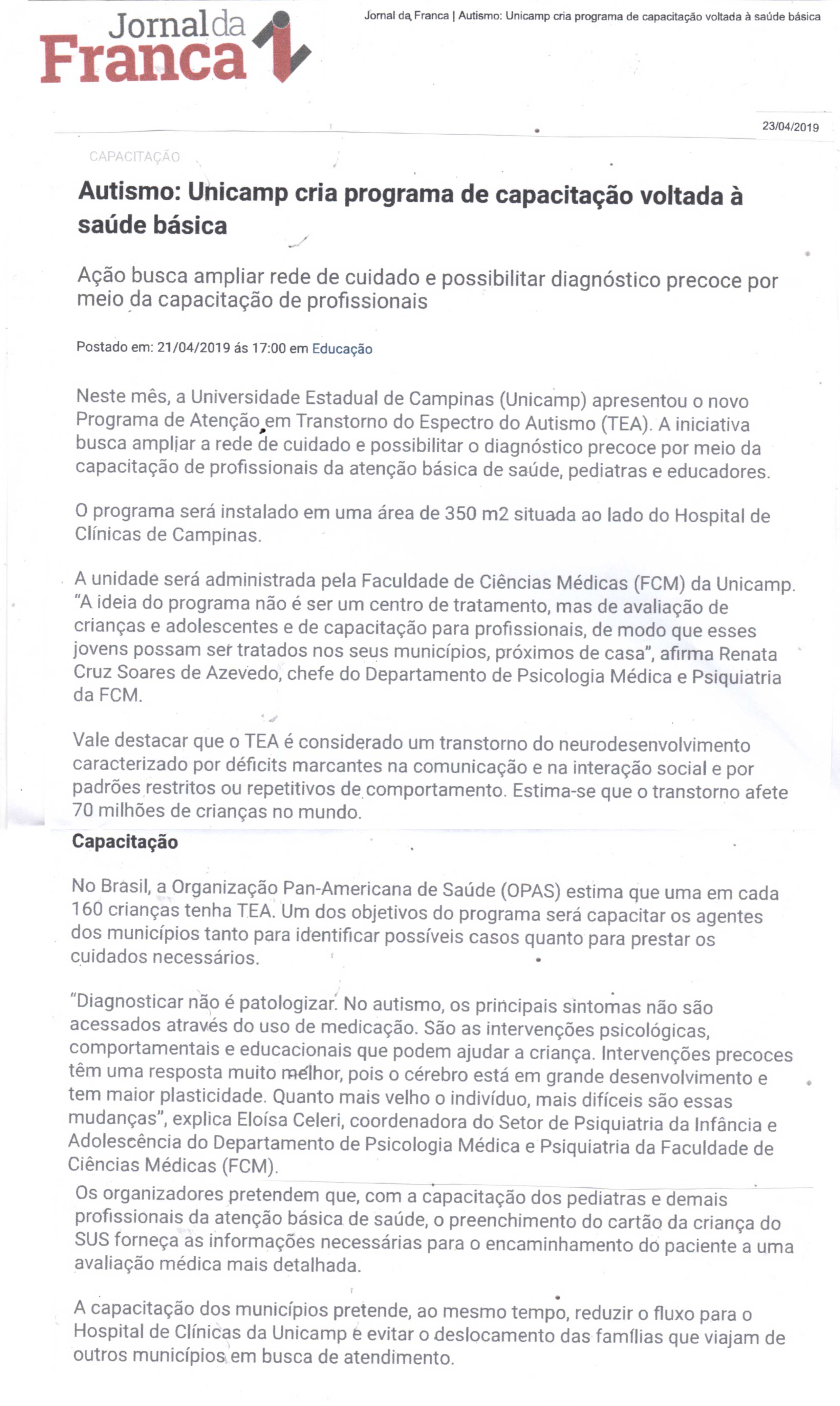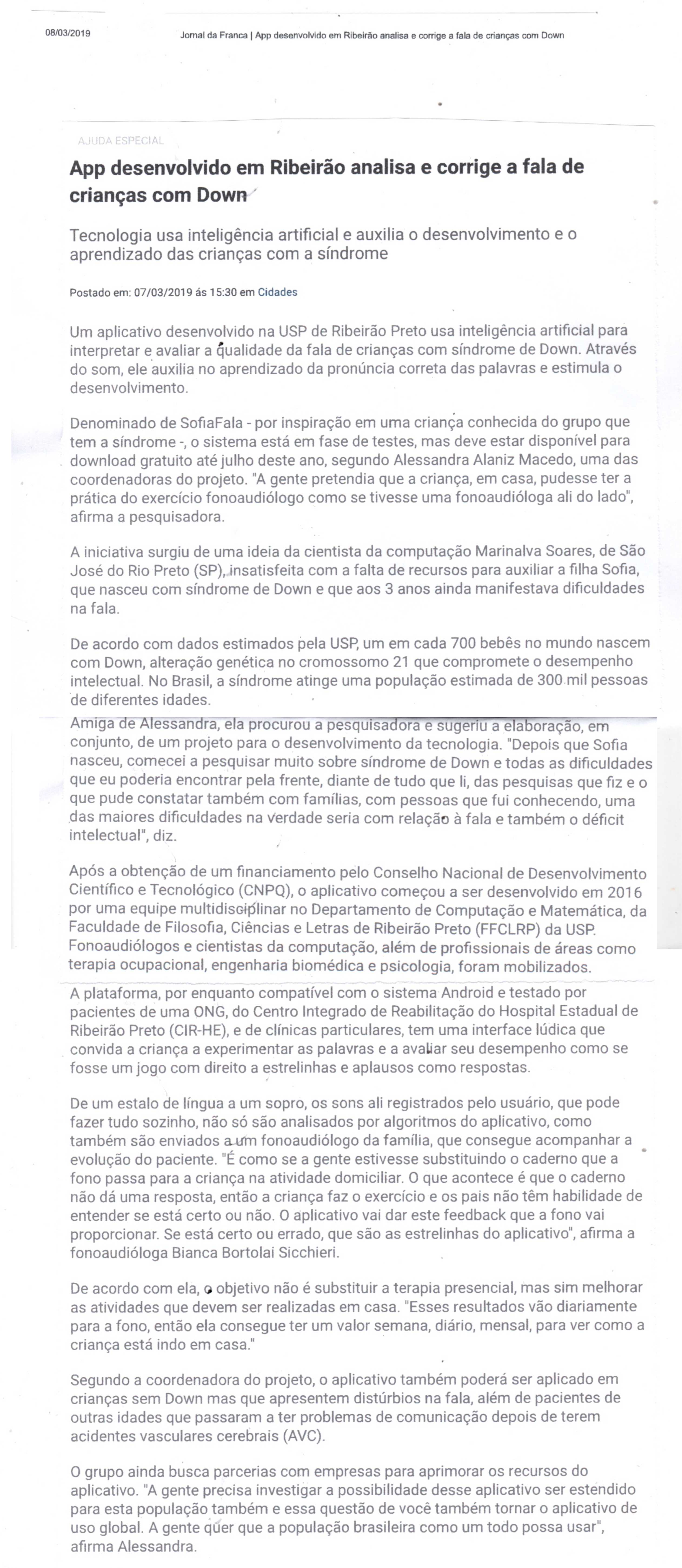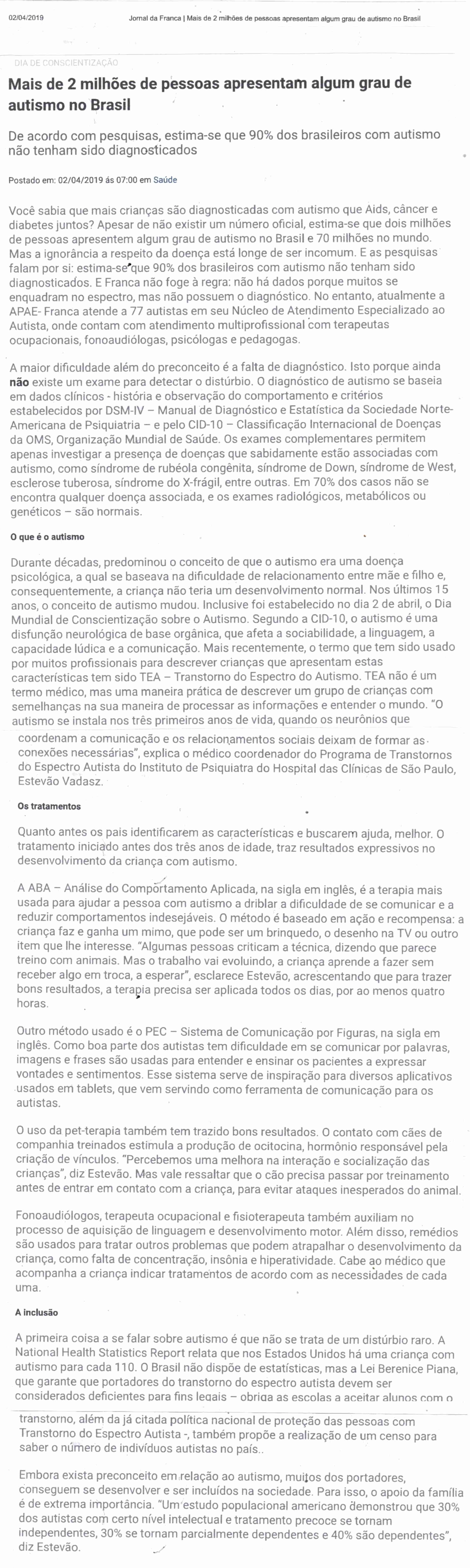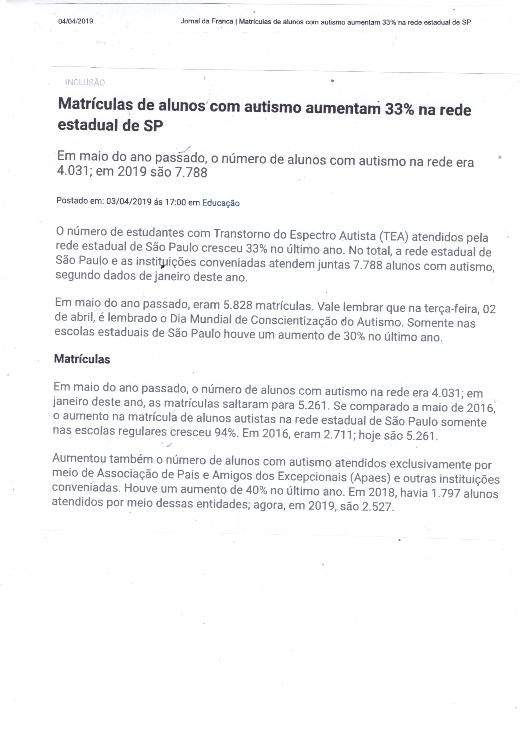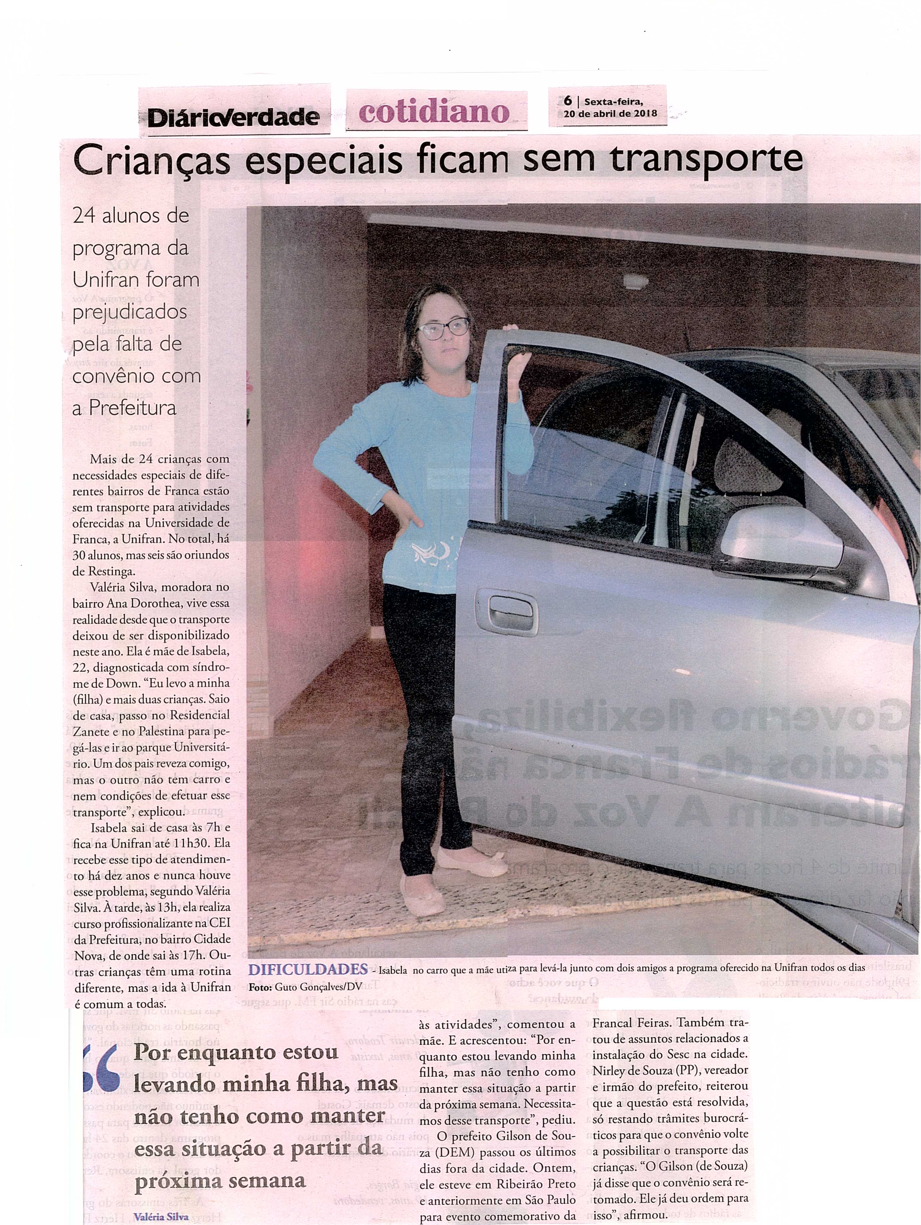 03/04/16 - DIÁRIO DA FRANCA - Lutamos para que toda criança especial consiga ter uma vida...