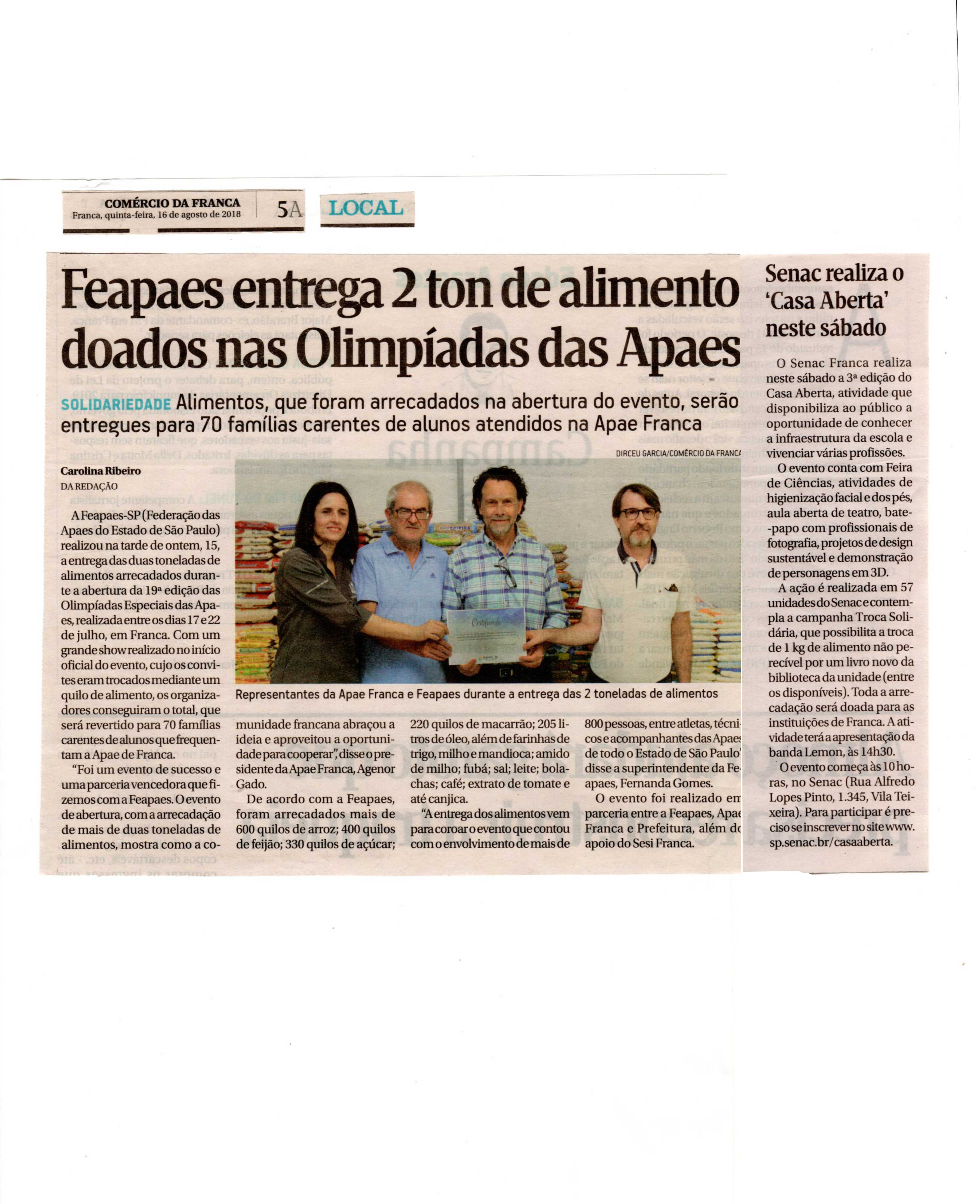28/08/16 - DIÁRIO DA FRANCA - Apae divulga números da Campanha dos Escolares - 2808-diario...