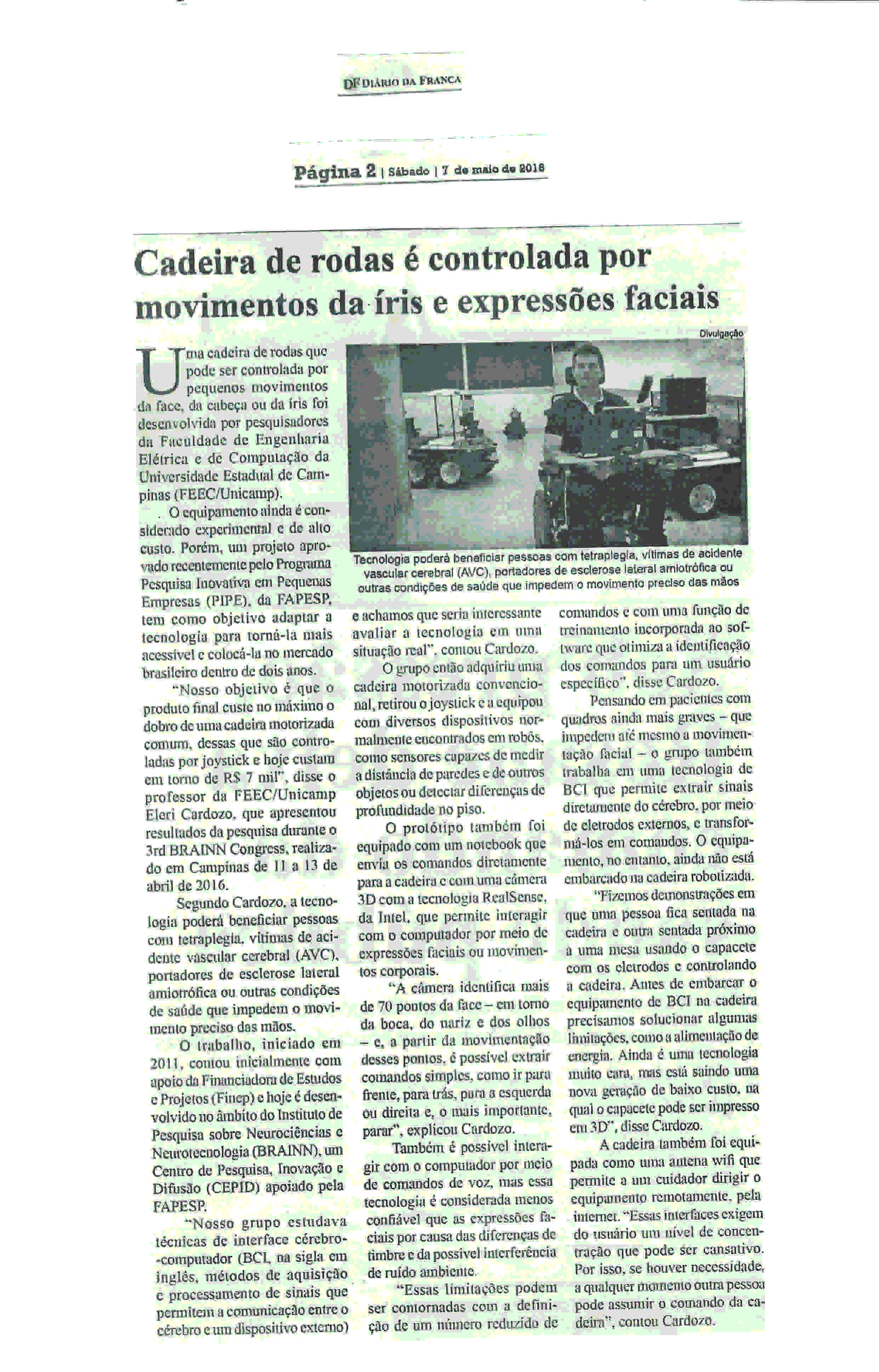 07/05/16 - DIÁRIO DA FRANCA - Cadeira de rodas é controlada por movimentos da íris e expre...