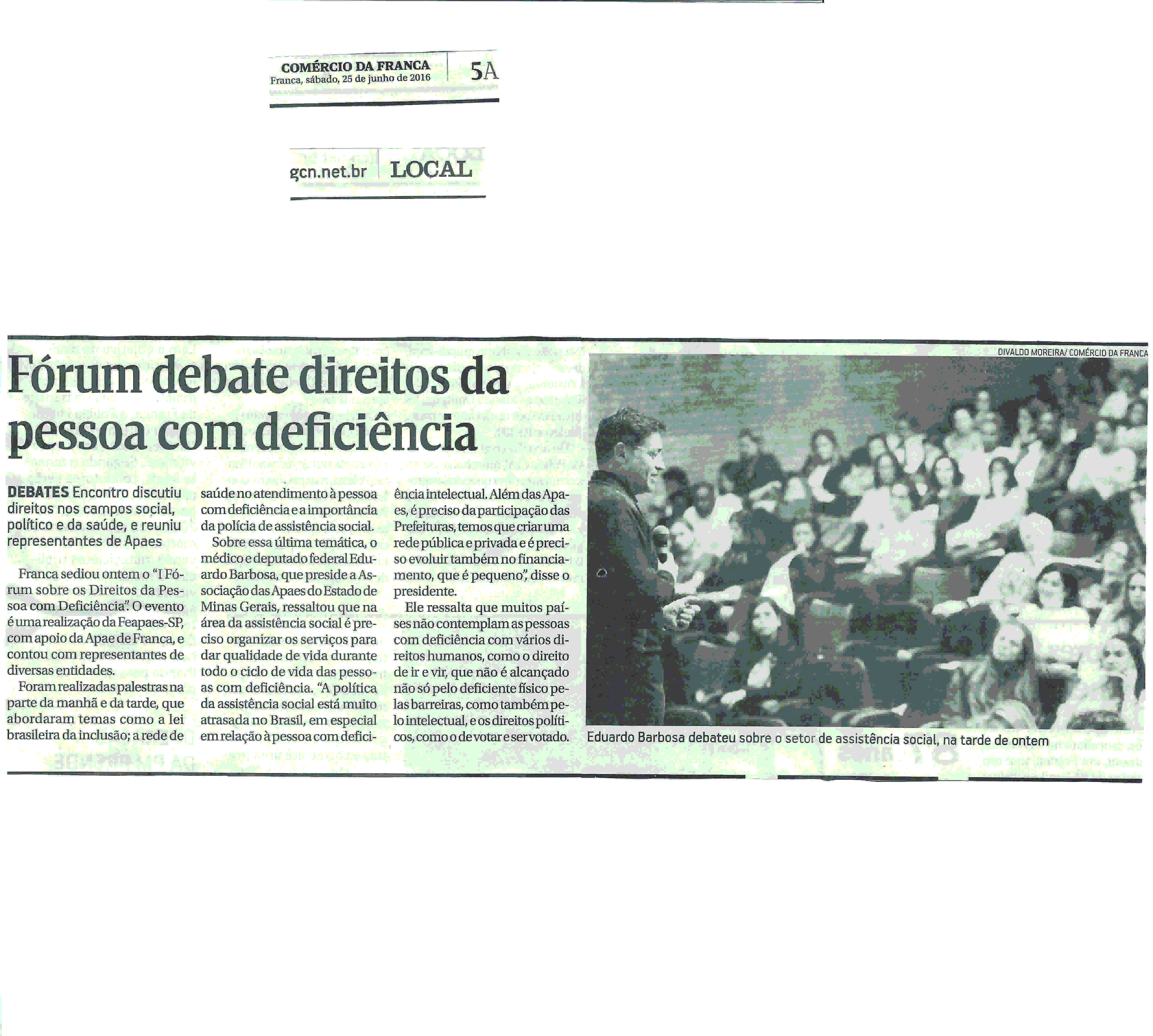 25/06/16 - COMÉRCIO DA FRANCA - Fórum debate direitos da pessoa com deficiência - 2506-com...