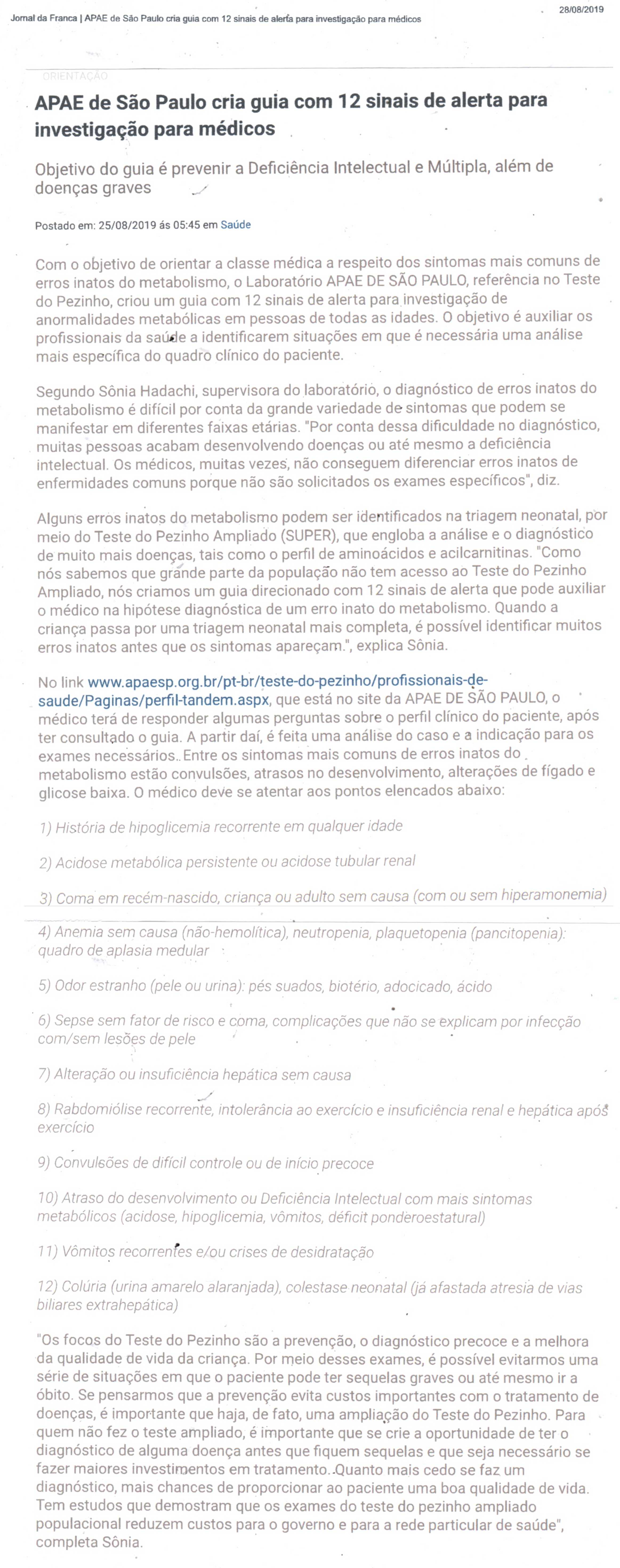 23.07.25 Vi no Site APAE Franca amplia cuidados na primeira infância com projeto de preven...
